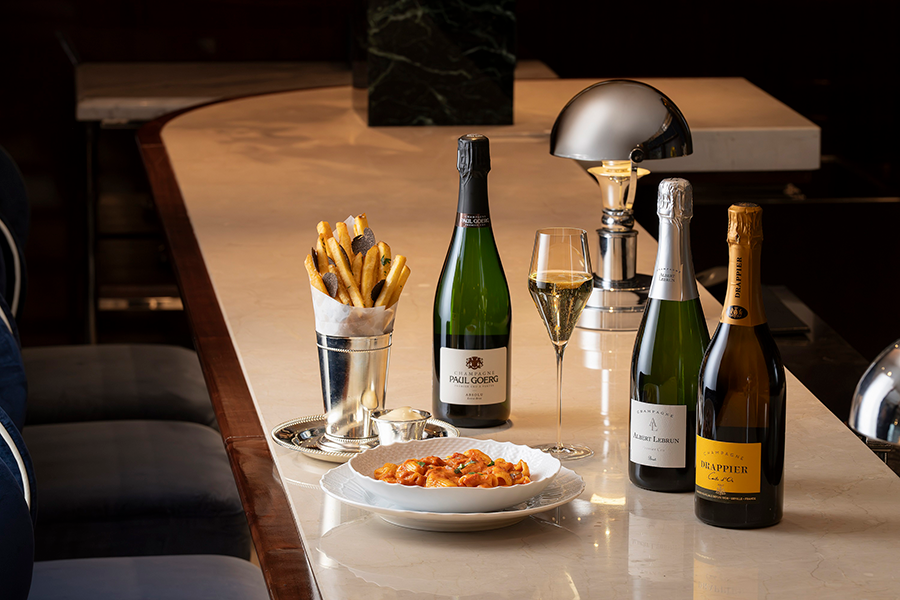 4월 18일(금)에는 폴 고그 앱솔루 엑스트라 브뤼 N.V(Paul Goerg Absolu Extra Brut), 알베르 르브랭 프리미에 크뤼 브뤼 N.V(Albert Lebrun Premier Cru Brut N.V), 드라피에 까르뜨 도르 브뤼 N.V(Drappier Carte d’Or Brut N.V)까지 총 3종의 샴페인과 그린 빈을 곁들인 참깨 소스의 치킨 미트볼이 함께 제공된다.