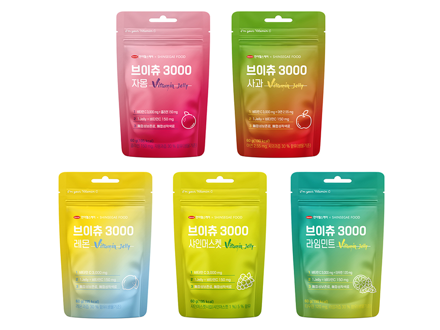 신세계푸드가 한미헬스케어와 협업을 통해 비타민 젤리 ‘브이츄 3000(V-chew 3000)’ 5종을 출시한다.