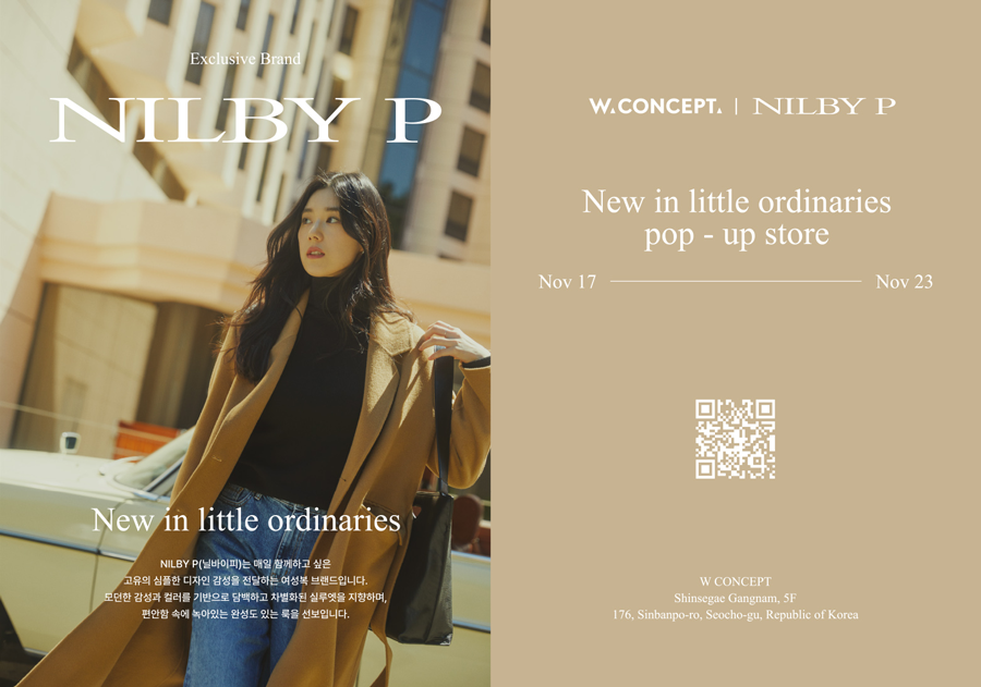 W컨셉은 17일부터 23일까지 일주일 간 신세계백화점 강남점 5층 매장에서 디자이너 브랜드 ‘닐바이피(NILBY P)’의 팝업스토어를 연다고 밝혔다. ‘닐바이피’를 첫 시작으로 W컨셉 내에서 인지도 높은 ‘상징적인 브랜드’를 지속 소개해 입점 디자이너 브랜드의 인지도 제고는 물론, 고객 체험 기회를 확대할 예정이다.