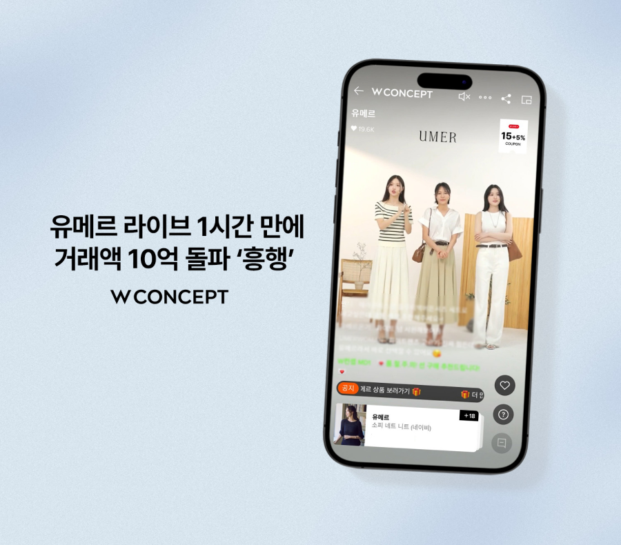 W컨셉, 디자이너 브랜드 ‘유메르’ 라이브 흥행…”1시간 만에 거래액 10억 돌파”