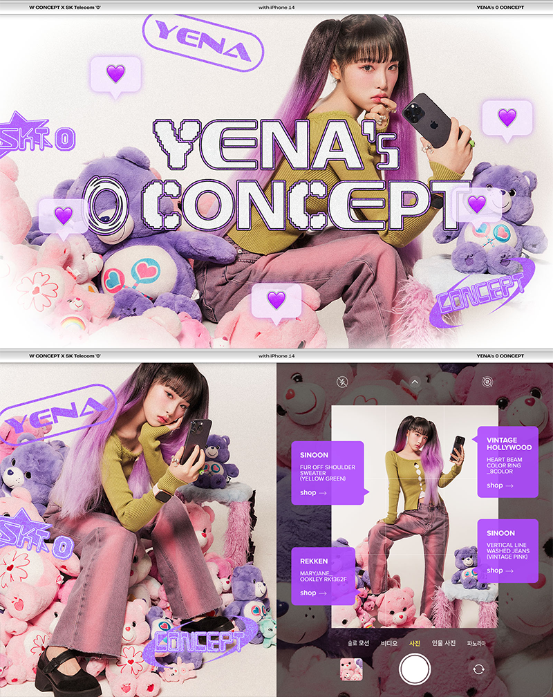 아이폰 14의 핵심 색상인 ‘퍼플(purple)’과 MZ세대를 대표하는 ‘젠지(Gen Z) 패션’을 테마로 한 패션 스타일링 콘텐츠를 선보이며, 가수 ‘최예나(YENA)’와 촬영한 패션 화보도 공개한다. 젠지 패션은 세기말(Y2K, Year 2000) 패션 트렌드를 Z세대가 재해석한 패션을 의미하며, ‘당당한 자아 표현’을 바탕으로 과감하고 개성이 강한 스타일이 특징이다.