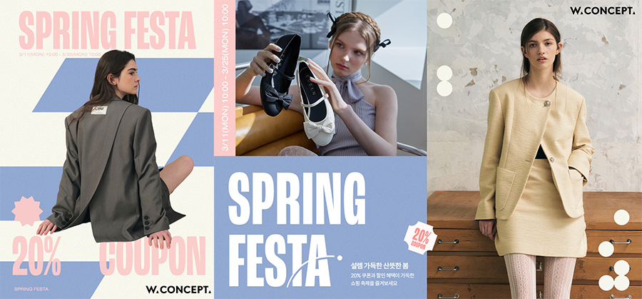 W컨셉은 오는 11일부터 24일까지 ‘스프링 페스타’를 열고, 화사한 봄 스타일링을 도와줄 봄∙여름(SS) 신상품을 선보인다. 이번 행사에서는 여성복 트렌드에 맞춘 의류 상품부터 백, 슈즈, 액세서리, 뷰티, 라이프 전 카테고리의 대표 상품을 만나볼 수 있다.