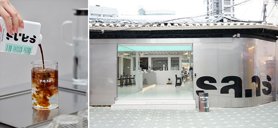 산스(SANS)는 국내 최초로 원두 없이 커피의 맛과 향을 유사하게 구현한 대체커피 브랜드로 전세계에서 유일하게 대체 커피 전문 매장을 운영하고 있다. ‘5대 멸종위기 작물’로 지정된 원두 대신 기후 변화와 무관하게 어느 나라에서도 하우스 재배가 용이한 대추씨, 치커리 뿌리, 보리 등의 12가지 원료를 조합해 아메리카노와 유사한 대체 커피를 개발했다.