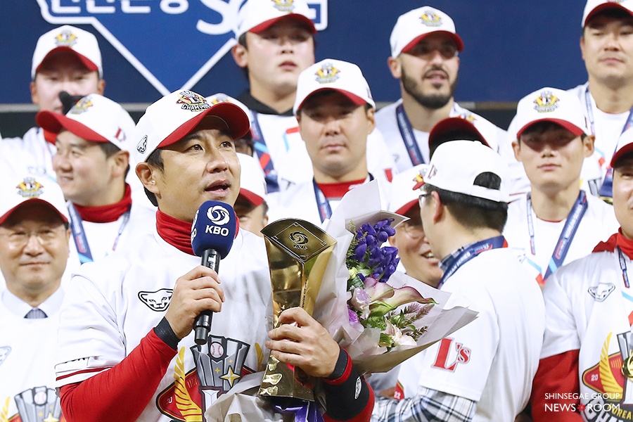 부임 2년 만에 팀을 정상으로 이끈 김원형 감독은 “시즌 개막부터 이런 영광을 만들어준 팬 여러분들과 선수들에게 감사하다”며 “말로 표현을 할 수 없을 정도로 기분이 좋다. 앞으로 더 노력하는 감독이 되겠다”고 소감을 전했다. SSG랜더스는 KS 5차전이 열리기 전 김원형 감독의 재계약을 발표한 바 있다.