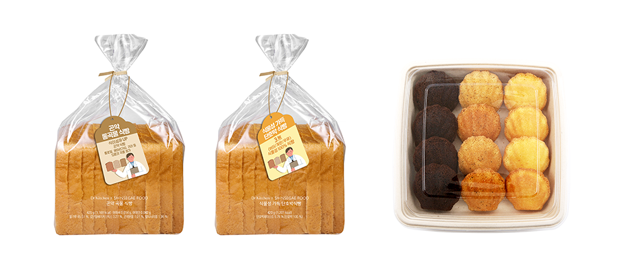이에 신세계푸드는 건강 특수식 전문기업 ‘닥터키친’과 손잡고 ‘식물성 가득 단호박 식빵’, ‘곤약 통곡물 식빵’ 2종을 선보였다. ‘식물성 가득 단호박 식빵’은 동물성 원료를 지양하는 비건 소비 트렌드에 맞춰 버터, 우유, 달걀을 넣지 않고 식물성 원료를 주로 사용하여 만든 제품이다. 단호박 본연의 맛으로 건강한 단맛을 내고, 탕종 방식으로 구워내 일반 식빵과 같은 부드럽고 쫄깃한 식감을 느낄 수 있다. ‘곤약 통곡물 식빵’은 곤약과 9가지 곡물(통밀, 통호밀, 해바라기씨, 보리, 귀리, 대두, 조, 옥수수, 야마씨)로 고소한 맛을 살린 신개념 곤약 식빵이다. 식빵 100g당 식이섬유를 4.7g씩 섭취하도록 하여 영양을 고려한 균형 잡힌 식사가 가능하도록 했다. 전국 이마트 내 베이커리 매장과 SSG닷컴에서 판매되며, 가격은 각각 4480원, 4680원이다.