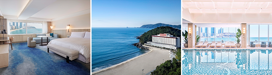 특히 수영장 실내 공간에 새롭게 도입된 천장의 차양은 자연 채광과 은은한 실내 조명이 적절히 조화를 이루며 휴식에 최적화된 무드를 조성하도록 했고, 확장된 야외 테라스 공간은 해운대의 절경을 가장 근접하여 만끽할 수 있는 공간으로서 향후 다채로운 이벤트 공간으로도 사용될 예정이다.
