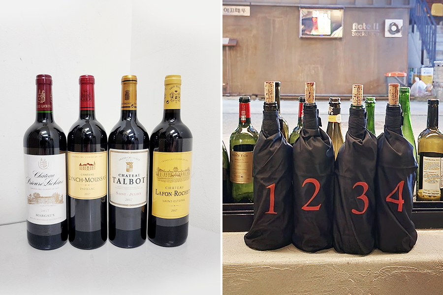 이번 블라인드 테이스팅은 프랑스 보르도 지역의 네 가지 AOC인 마고, 생쥴리앙, 생떼스테프, 뽀이약을 중심으로 진행했습니다. 모든 와인은 2017빈티지로 준비하였습니다.