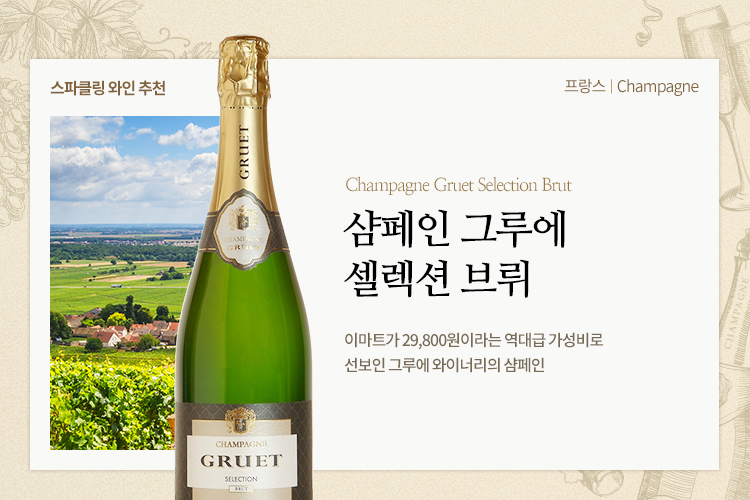 샴페인은 콧대 높은 스파클링 와인이라고도 할 수 있죠. 생전 처음 보는 이름의 스파클링 와인도 샴페인이라는 라벨이 프린트되는 순간 부담스러운 신분으로 변하니까요. 하지만 그럼에도 불구하고! 이마트에서는 3만원 미만의 샴페인을 만나볼 수 있습니다. 늘 그렇듯 잠깐 제 자랑을 하자면, 상파뉴 전역의 와이너리를 접촉해 3만 병 이상의 대량 기획과 수입사·유통사의 최소 마진으로 최저 가격을 달성했죠. 정말 쉽지 않은 과정이었답니다.