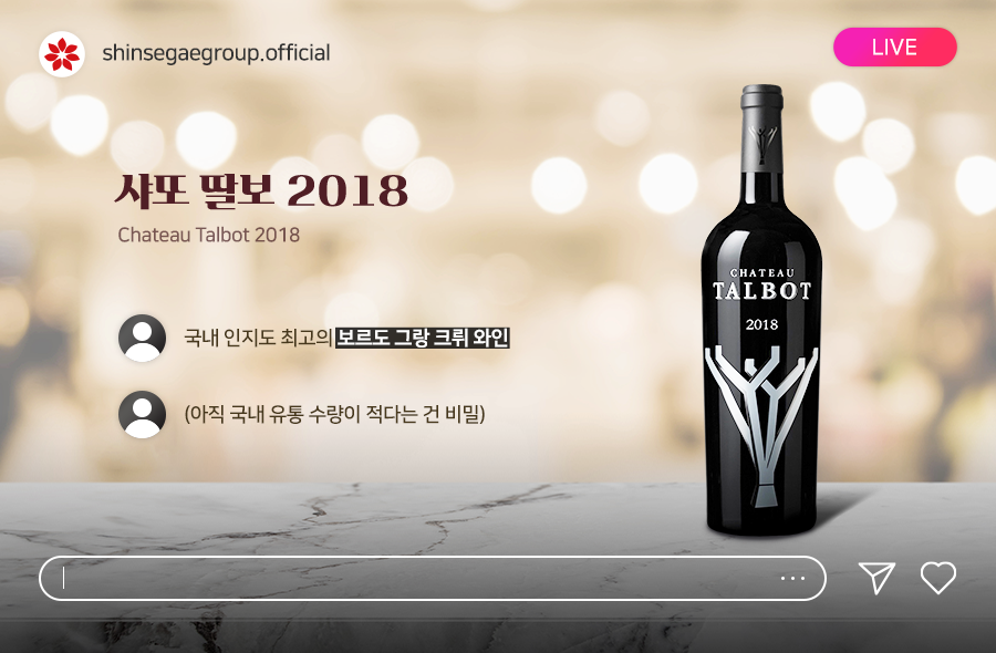 국내 인지도 최고의 보르도 그랑 크뤼 와인이죠. 이 유명한 딸보에서 스페셜 레이블이 출시되었습니다. 현 소유주인 코르디에가 인수한 지 100주년을 기념하기 위해 제작한 스페셜 라벨로 샤또 딸보 와이너리의 기둥을 라벨에 형상화한 것이라고 합니다. 아직 시장에 많이 풀리지 않은 빈티지로 가격은 다소 높게 책정되어 있으나 기존 라벨과 차별화된 요소가 구매욕을 자극하는 상품입니다. 향후 어느 정도 수입은 되겠지만 현재 국내 유통 수량은 매우 적어요. 가격은 12만 원.