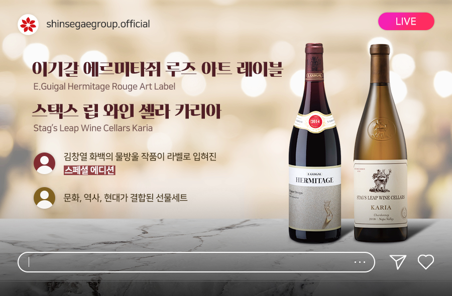 프랑스 론 지역을 대표하는 이기갈과 미국 와인을 세계적 반열에 올려놓은 스택스 립 와이너리의 와인을 조합한 프리미엄 와인 세트에요.  이기갈 에르미따쥐 아트 컬렉션은 얼마 전 작고하신 김창열 화백의 물방울 작품을 라벨로 입힌 와인이랍니다. 스페셜 에디션으로 이기갈의 전통과 예술의 콜라보 와인으로 주목받고 있답니다.