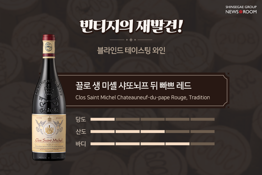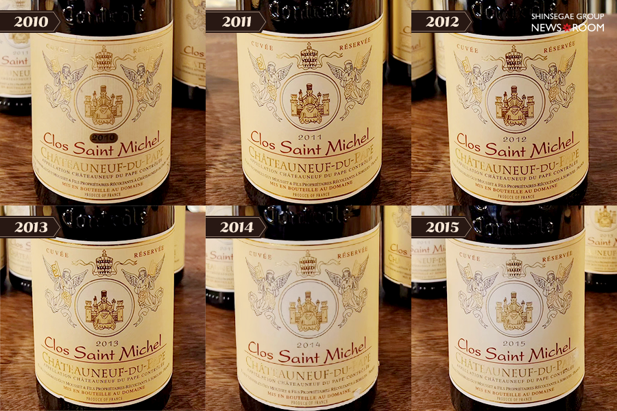 와인은 ‘끌로 생 미셸 샤또뇌프 뒤 빠쁘 레드’로 결정했습니다. 빈티지마다 3,500 케이스씩만 소량 생산하며 약 1년간 오크 배럴에서 숙성을 거친 뒤 출시되는 와인인데요. 섬세한 와인이라 맛을 구별하기 좋고, 장기 숙성이 가능한 잠재력이 있어서 연도별 테이스팅을 할 수 있는 요건이 되었습니다. 이번 테이스팅 주인공으로 딱 맞았어요.