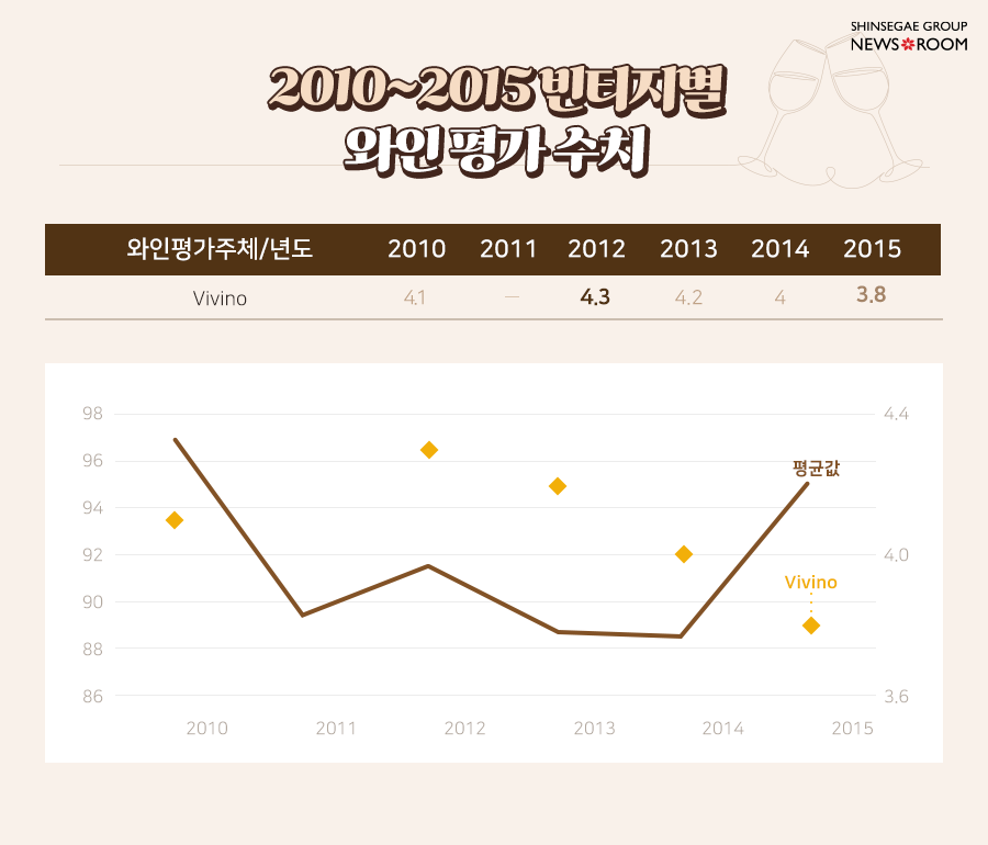 또 재미있는 평가가 하나 있습니다. 전 세계 와인 마니아들의 커뮤니티죠. 대중의 입맛을 담기로 유명한 ‘Vivino(비비노)’의 빈티지 평가인데요. 전문지 등에서 평균적으로 높게 평가한 2010, 2015 빈티지는 상대적으로 점수가 낮은 반면, 저평가 받은 2012, 2013 빈티지는 꽤 점수가 높습니다. 이번 테이스팅에서 참가자들이 전반적으로 좋다고 평가한 섹션 1,3 파트가 비비노에서는 좋지 못한 점수를 받았고, 오히려 섹션 2 파트가 좋은 평가를 받았습니다. 여러 매체의 평균값, 비비노, 오늘의 블라인드 테이스팅 모두가 각자 다른 결과가 나온 것이죠.