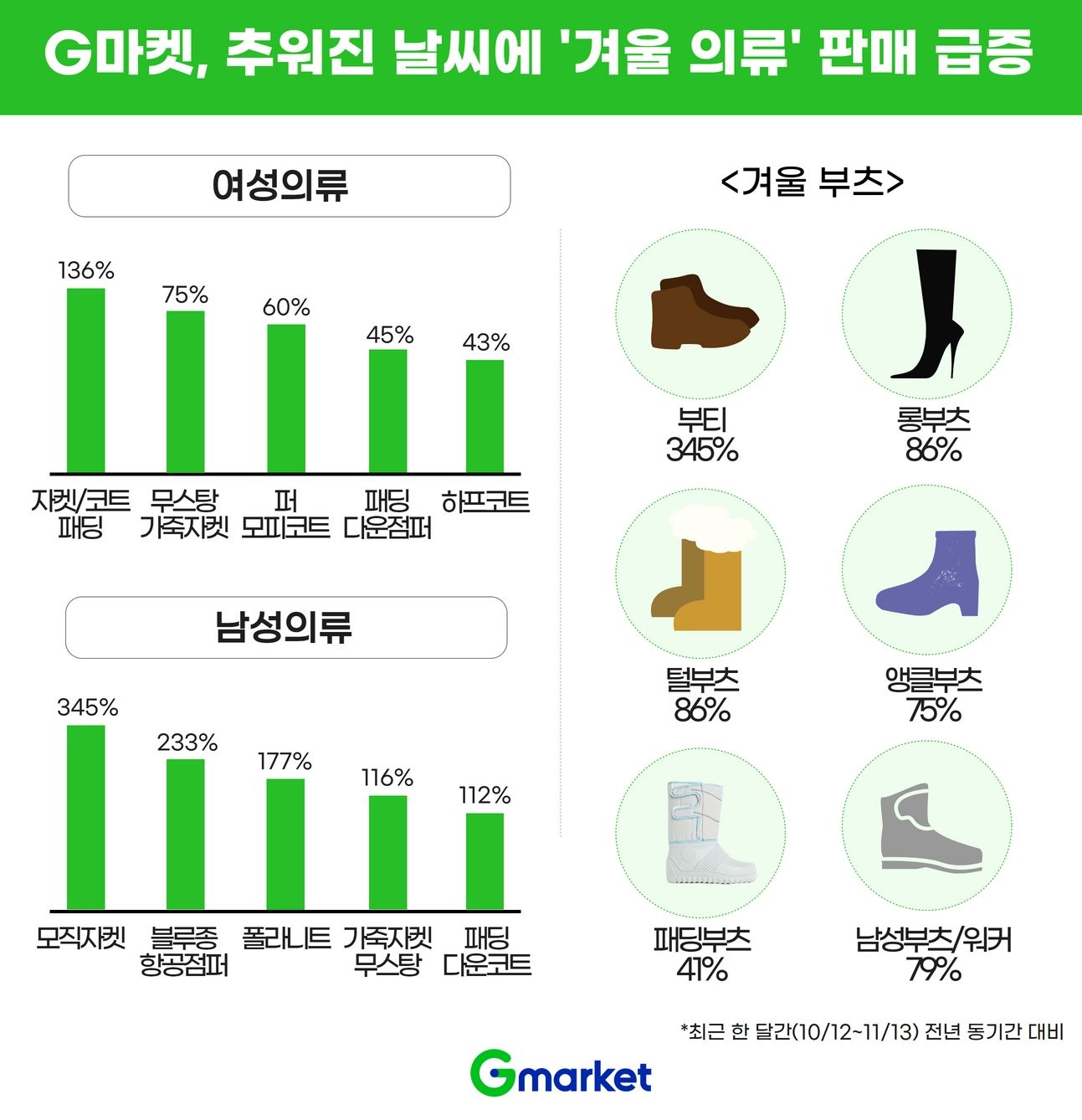 MEDIA 글자 크기 보통 크게 아주 크게 공유하기 페이스북 X 카카오톡 링크 복사 링크 복사됨 도구 보기 이미지 다운로드 G마켓, 추워진 날씨에 ‘겨울 의류’ 판매 급증… ‘방한도 멋도 포기 못해’ 2022.11.18 G마켓