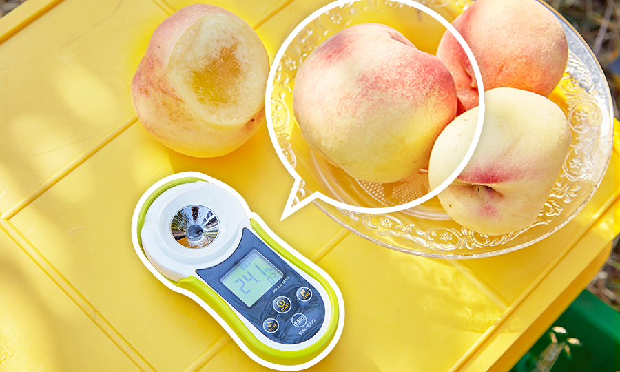 갓 수확한 설아의 당도를 측정해보니 23브릭스가 훌쩍 넘었다. 맛을 본 사람들 사이에 연신 감탄이 쏟아진다. 다른 나무에 달린 설아 복숭아를 수확해 다시 한번 당도를 측정해보니 이번엔 24브릭스를 넘긴다. 맛을 보니 설탕을 바른 복숭아 맛이다. 샤인머스캣을 처음 먹었을 때의 충격을 뛰어넘는 수준이다.