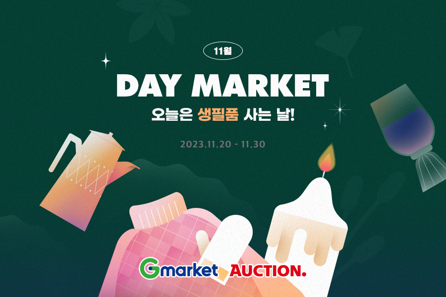 국내 대표 온라인 마켓플레이스 G마켓과 옥션이 30일(목)까지 ‘11월 데이마켓’을 열고, 카테고리 별로 겨울철 많이 구매하는 상품을 매일 100개씩 엄선해 최대 76% 특가에 공개한다.